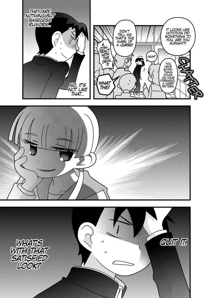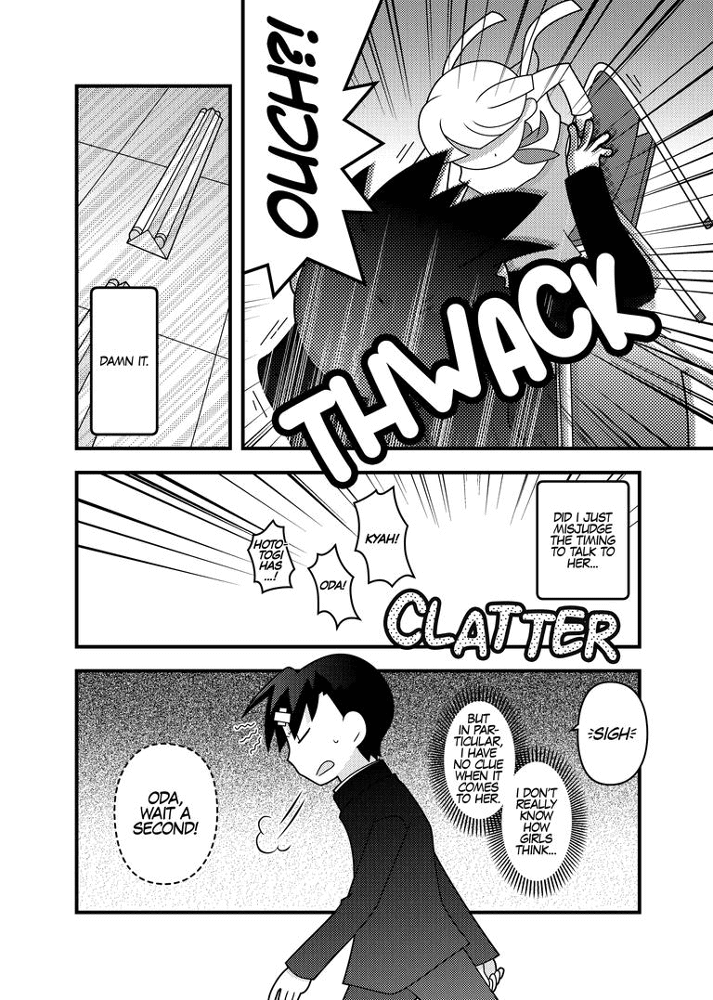 In every class, it’s not usual for there to be one or two people who seem a little strange. In Oda’s class, there is Hototogi. Hototogi doesn’t say much and is always alone. Almost no one seems to know anything about her, which has lead to many strange rumors about her start circulating. It’s not Oda’s responsibility to befriend her, but before he realizes it, he finds himself intrigued by the mysterious Hototogi!